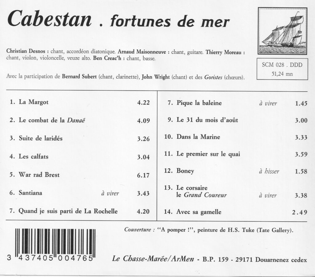 Ce CD (1993) marquant les dix ans de la création de Cabestan propose un nouvel échantillon de la diversité des répertoires des milieux maritimes : chanteys (Boney, Santiana), chants des gens de mer du littoral en breton et en français (War rad Brest, Quand je suis parti de La Rochelle), complaintes et chants de combat naval (Le 31 du mois d’août, Le combat de la Danaé, Le corsaire Le Grand Coureur), chants de bord des long-courriers et baleiniers (La Margot, Pique la baleine), chants des ouvriers des ports du Havre et de Brest (Les calfats, Avec sa gamelle), airs à danser…