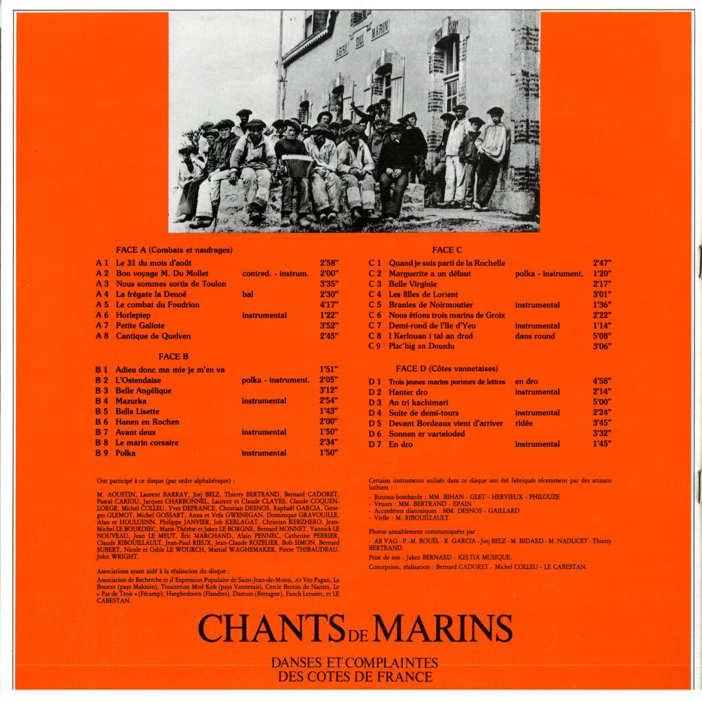 Le second double 33 t. de l’Anthologie (1982) est consacré au répertoire des gens de mer « qui ne sert pas aux manœuvres », privilégiant les complaintes, les chants à danser ou les chants à écouter. Un répertoire spécifique aux gens de mer alors méconnu, tels la remarquable complainte sur le combat naval du Foudrion (1758), ou les chants en breton pour danser la « dañs round » du pays Pagan (sur la côte Nord du Finistère). L’occasion d’entendre chanter, entre autres, Erik Marchand, les Trouzerion, Catherine Perrier…